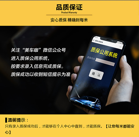 (4)完美装贴,可提升漆面30%的亮度,完美覆盖漆面原有划痕,保护原厂车漆。