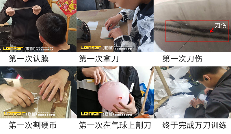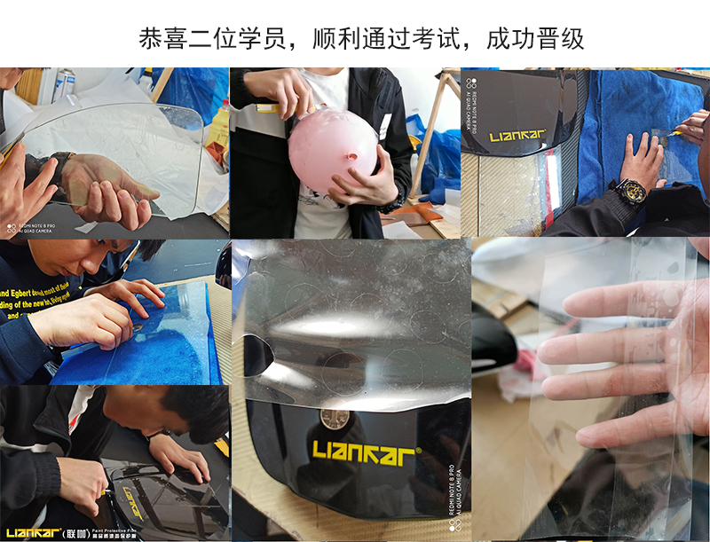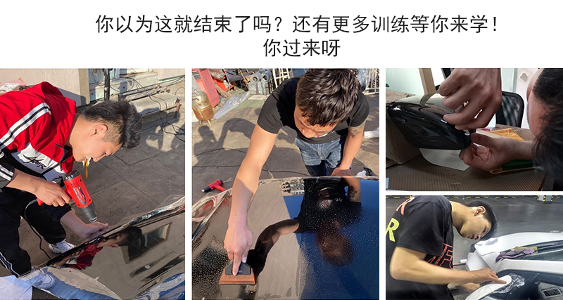 联咖车衣学习正式开始,王老师除了给我们讲解理论知识,还带我们认膜,认工具、区分车型及部位、讲解施工流程、漆面解决办法等。